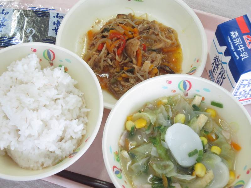 今日の主菜であるプルコギは、韓国の代表的な肉料理の一つです。韓国語で「プル」は「火」、「コギ」は「肉」を指し、「火で焼いて食べる肉」という意味があります。日本で肉を焼く料理といえば、まず、シンプルな焼き肉を思い浮かべる人が多いと思いますが、今日のプルコギは、薄切りした牛肉を野菜とともに醤油ベースの甘辛いタレにしっかり漬け込んで焼く、韓国で人気が高い焼肉料理の一つです。このように給食では和食だけでなく、他国の料理も献立に取り入れていますので、給食を通して他国の料理に触れながら日本との違いを感じて食べてくださいね。