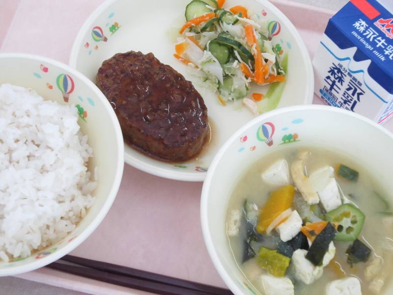 みそは、大豆などを発酵させた日本人の食生活に欠かせない食品です。平安時代の頃のみそは大変貴重な食品で、地位の高い人の給料や贈り物として使われていました。また、その頃のみそは食べ物につけたり、そのままなめたりするなど、おかずや薬として利用されていました。みそが調味料として使われるようになったのは、鎌倉時代だと言われています。今日は夏野菜のオクラやなす、かぼちゃを使ってみそ汁を作りました。野菜は体にとても良いので残さず食べましょう。
