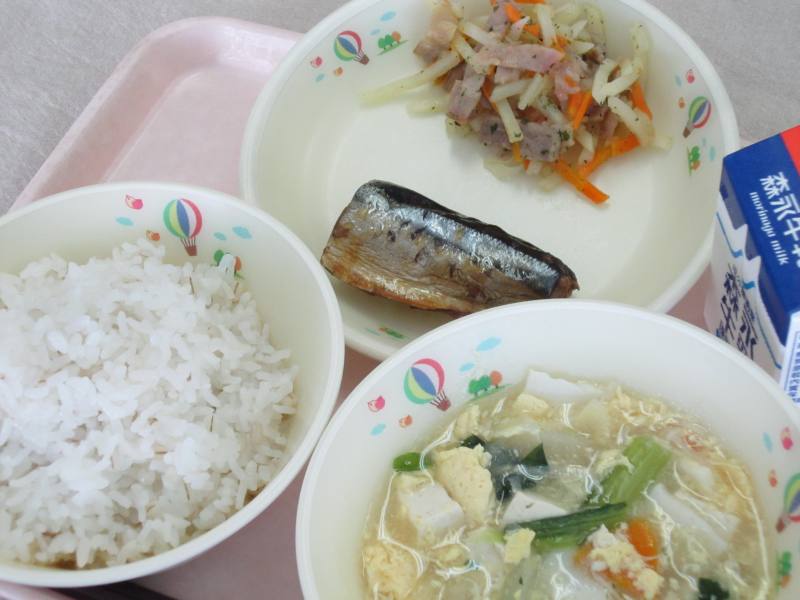 今日は、秋の味覚の一つである「さんま」についてお話しします。さんまは漢字で秋刀魚と書きますが、日本では主に秋にしか獲れず、刀(かたな)のような細長い形をしていることが名前の由来になったと言われています。さんまは鯖(さば)や鰯(いわし)などと同じ青魚で、脳の細胞を活性化させて記憶力を高める効果のあるDHAや、血液をサラサラにしてくれる働きのあるEPAという栄養をたくさん含みます。魚が苦手な人もいると思いますが、ぜひ、今が旬のおいしいさんまを味わって食べてみてくださいね。