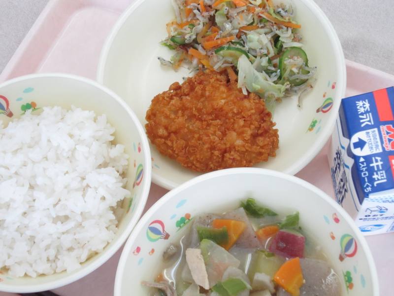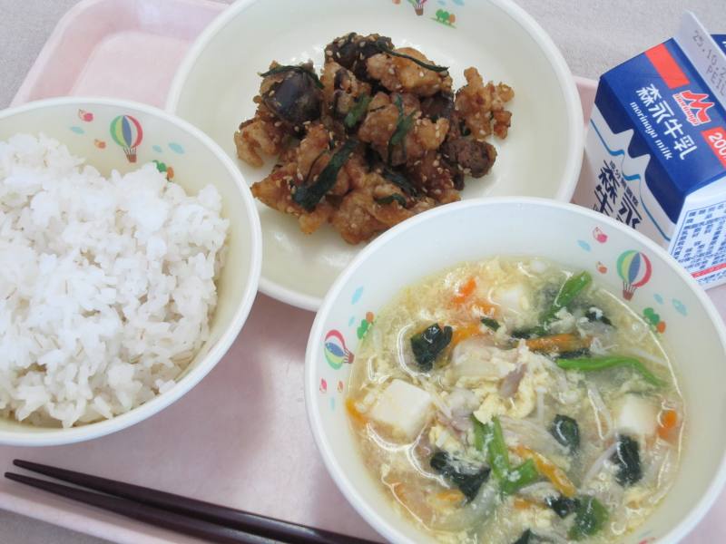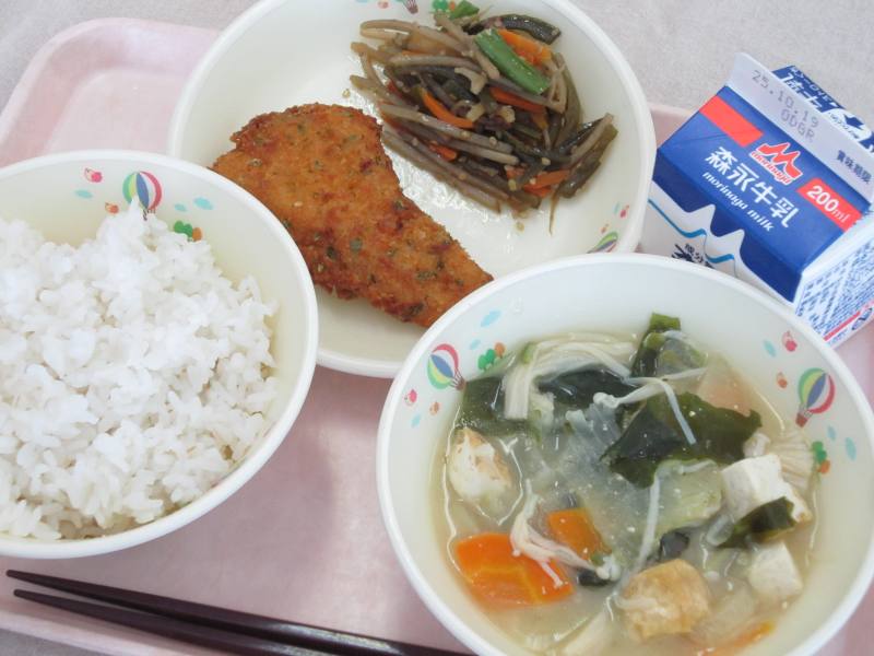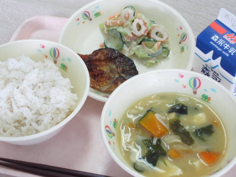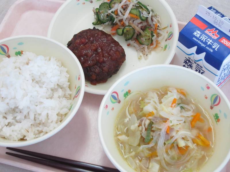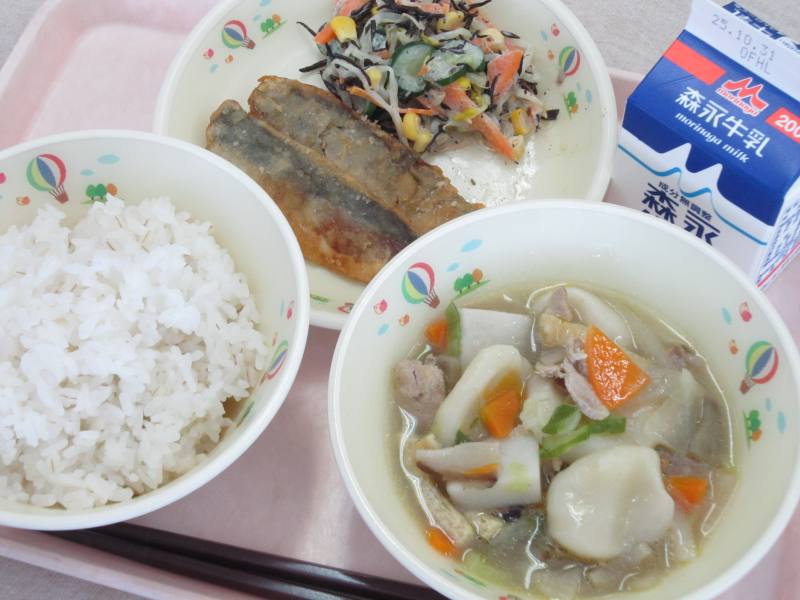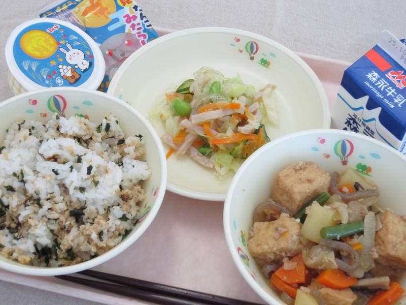 今日の給食は、各クラスで鮭わかめごはんを作って食べましょう。給食センターで作った鮭わかめごはんの具と大きいしゃもじを配っていますので、ごはんの中に具を入れて、ムラがないようにしゃもじでしっかり混ぜてくださいね。また、今日は中秋の名月(十五夜)で、1年で最も月が美しいとされる日です。日本では昔から豊作に感謝し、お月見だんごやススキをお供えする風習がありますので、今日はみたらしソースが入ったおだんごをつけています。(幼稚園は、誤嚥防止のためゼリーをつけています。)今夜は、美しい十五夜の月を眺めてみましょう。