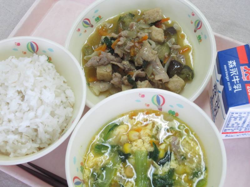 - 豚肉となすのカレー炒め