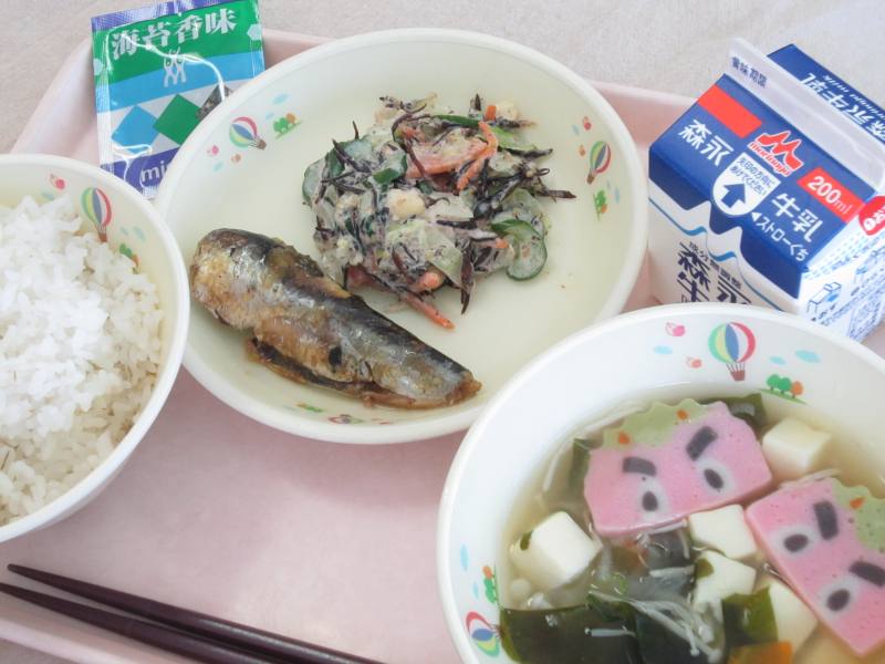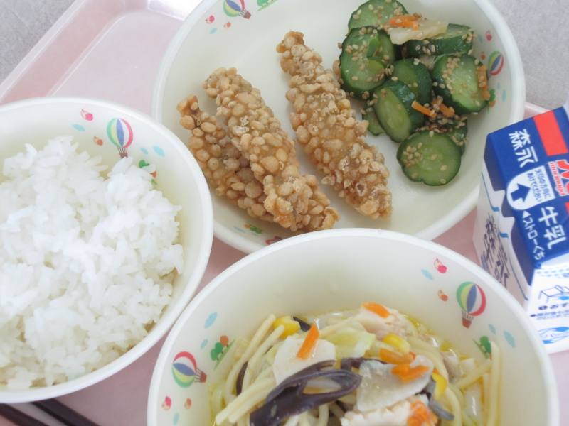 みなさんは、どのような時に料理のおいしさを感じますか。おいしさの要素には、味、香り、食感、見た目、音といった五感で感じる部分と好みや気分、雰囲気などが関係して決まると言われています。今日はそのおいしさを感じる要素の中でも、「音」を感じながら食べてもらえるように献立を考えました。和え物に使われているつぼ漬や揚げたきびなごの音などに耳をすましながら食事を楽しんでくれると嬉しく思います。