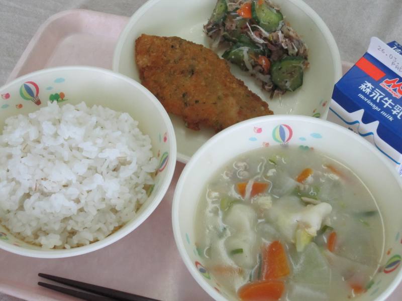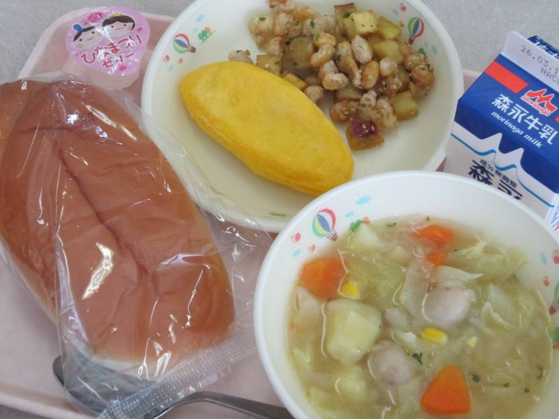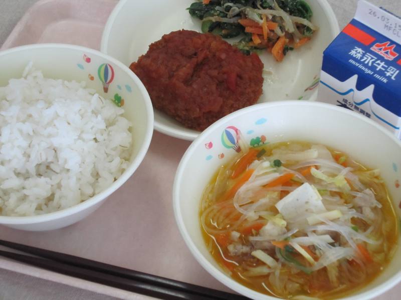 ※オーブンの不具合により、献立表のハンバーグをとんかつに変更しています。