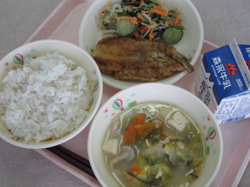 給食ではいろいろな食材を使うようにしていますが、魚は食べてほしい食材の一つなので、一週間に一回は魚料理を入れるようにしています。魚には、脳の働きを助けたり、血液をサラサラにする効果がある脂が含まれているからです。そして、今日のように骨ごと食べられる小さい魚は、カルシウムも取ることができるのでおすすめです。頭や尻尾は固いので、しっかり噛んで食べてほしいと思います。