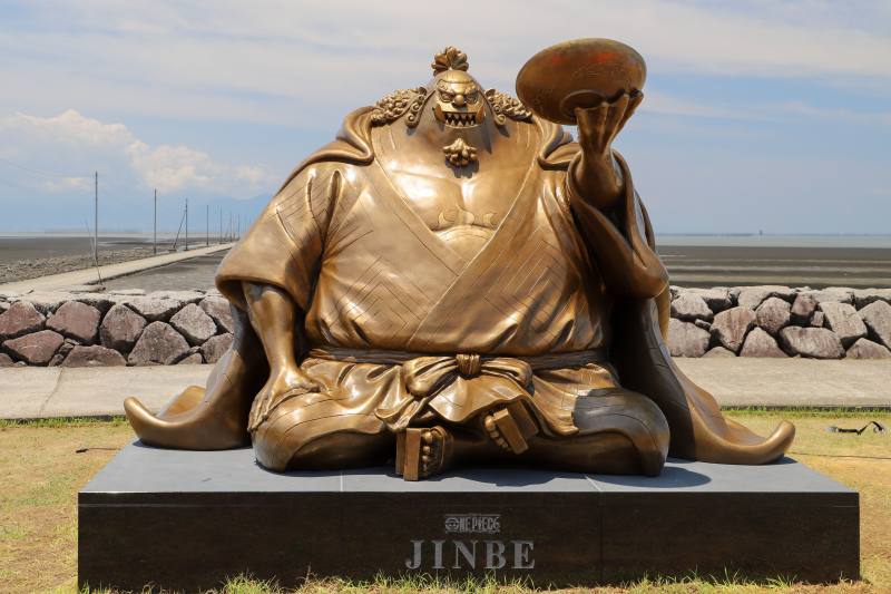 熊本県と熊本県出身の漫画家・尾田栄一郎さんが描く人気漫画『ONE PIECE』が連携した復興プロジェクト〈麦わらの一味「ヒノ国」復興編〉の一環として、宇土市にジンベエの像が設置されました。