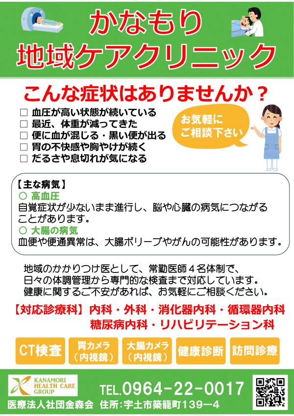 | かなもり地域ケアクリニック | https://www.kanamori.or.jp/ | 住み慣れた地域での暮らしを、医療と介護で支える金森会です | きょうの健康 |