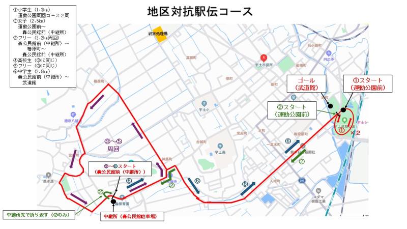 1月12日(月・祝)に開催される第51回宇土市地区対抗駅伝大会について、昨年度までの6区14.6kmのコースから図のとおり6区15.9kmのコースに変更します。