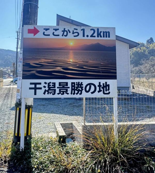 ※熊本市方面から国道57号線を車でお越しの際は、「干潟景勝の地」と書かれた看板を目印に右折し、以降は看板に従ってお進みください。
