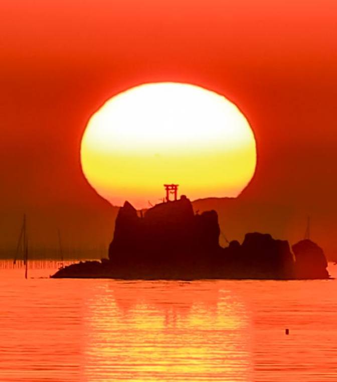 宇土市の三大夕焼けの一つと思ってましたので限られた期間での夕陽と風流島のコラボ狙ってました