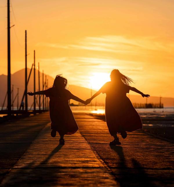美しい夕日を追いかける娘が可愛くて撮影しました。