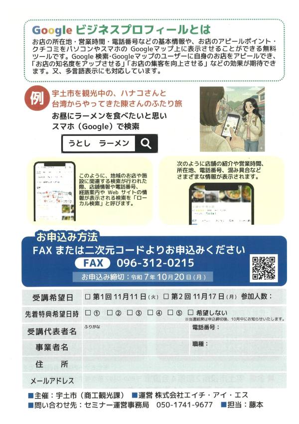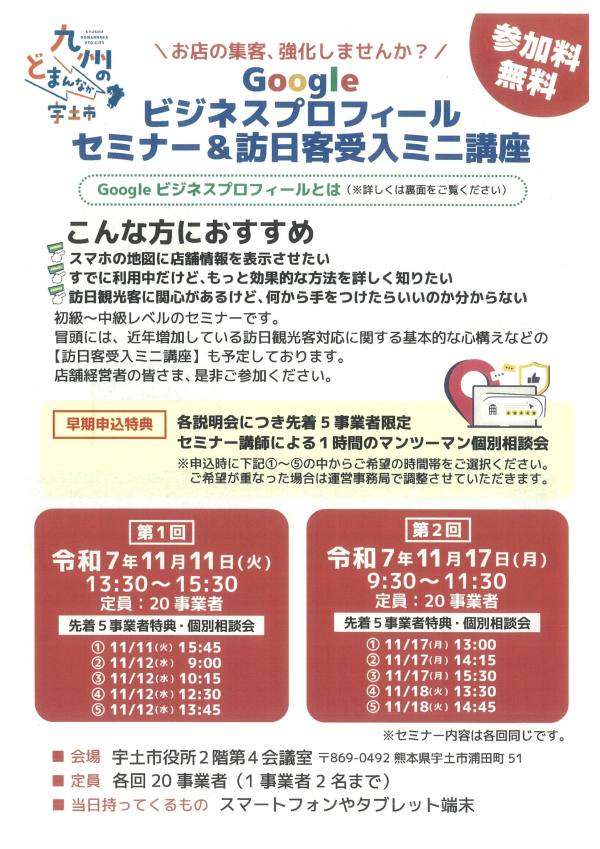 市内事業者の方を対象に、「Googleビジネスプロフィールセミナー&訪日客受入ミニ講座」を開催します。