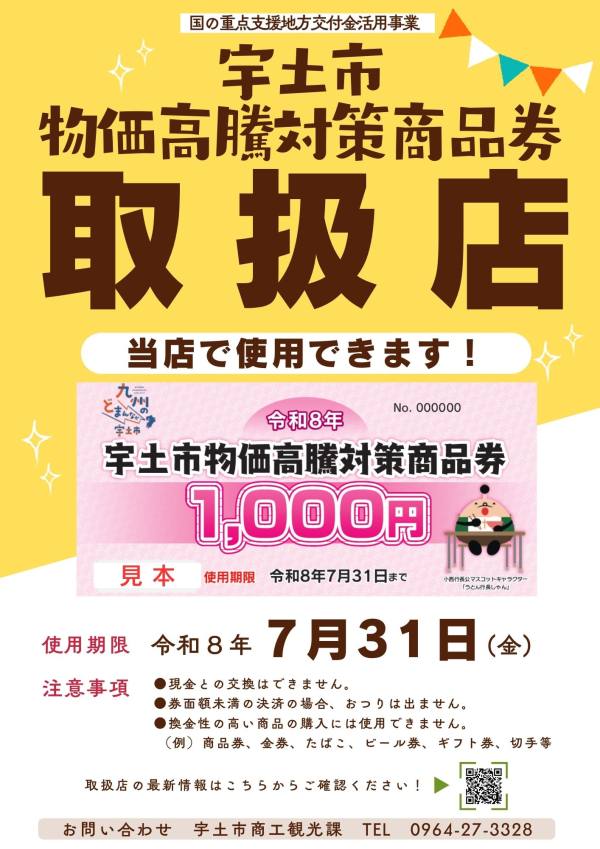 宇土市物価高騰対策商品券事業の実施に伴い、商品券の取扱事業所を募集します。商品券は事前に登録された店舗のみ利用が可能です。