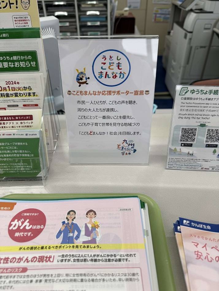 宇土市役所1階市民交流スペースにおいて、令和6年11月17日から12月27日の間に122名の方にサポーター宣言をしていただきました。ありがとうございました。個人で宣言をしていただく方に缶バッジを配布していますので、こども家庭センターまでおいでください。