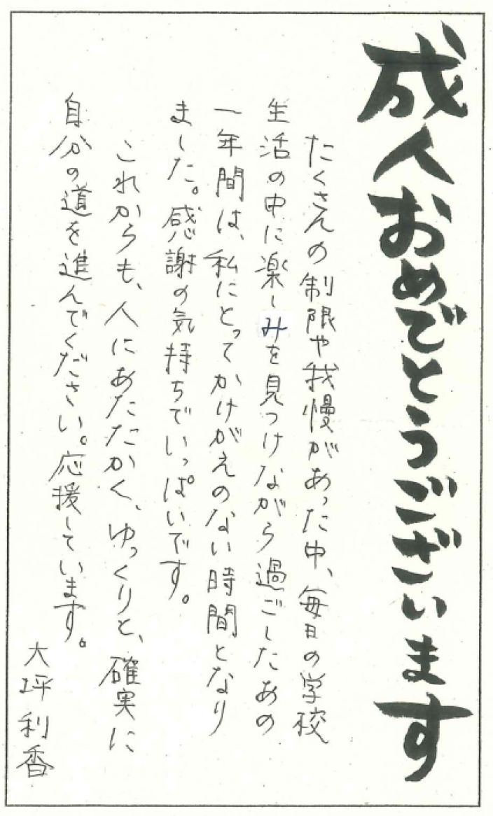 メッセージをクリックしていただくと、拡大して見ることができます。