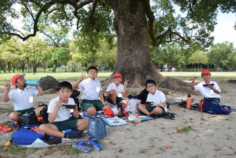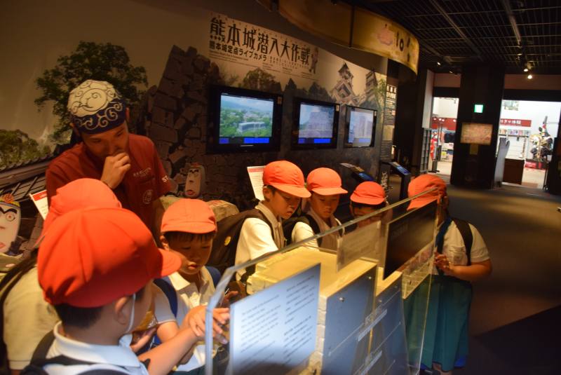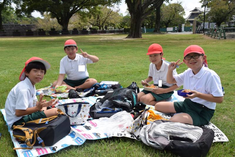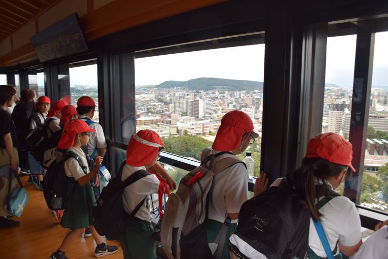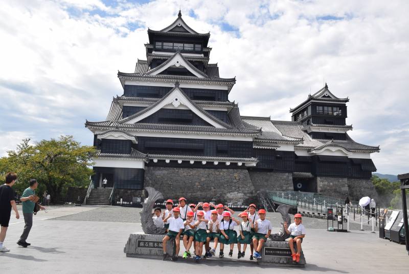 熊本城ではみんなで天守閣まで登りました。子どもたちは熊本市内を一望でき、喜んでいました。