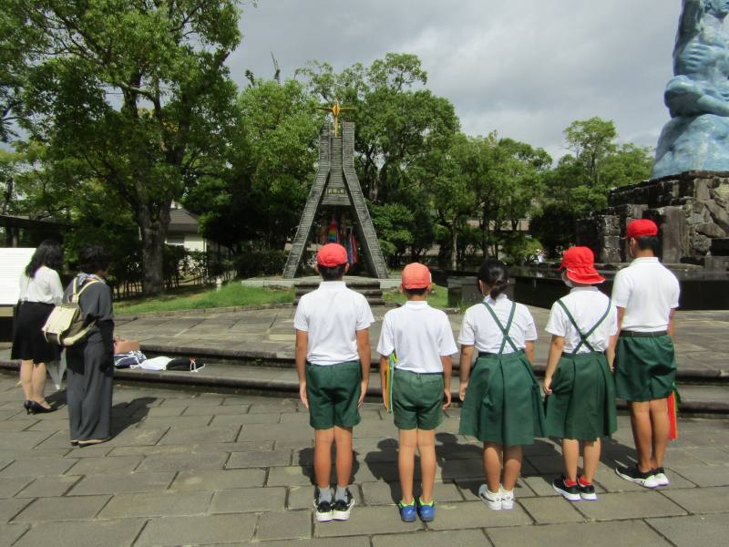 1日目は平和公園や原爆資料館などに行き、平和学習を行いました。語り部の方のお話、フィールドワーク、資料館での学習を通して、戦争の恐ろしさや悲惨さを肌で感じることができたのではないかと思います。6年生は真剣なまなざしで取り組んでいました。