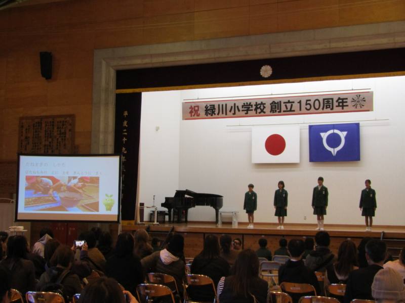 その後、子どもたちは今まで練習してきた緑川地区についての発表を多くの人の前で堂々と披露することができました。子どもたちは、今までの練習の成果を十分に発揮し、満足している様子でした。