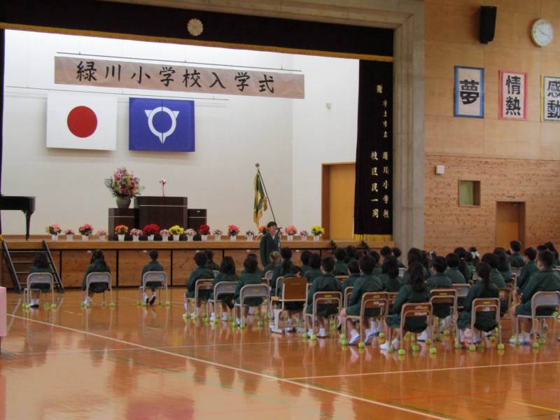 新1年生の元気で明るい返事やあいさつが体育館に響きました。これからの成長への期待が大きく膨らんだ入学式でした。
