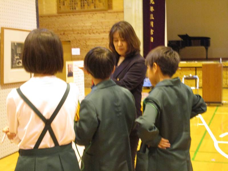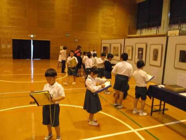 今回は浜田知明さん、マルク・シャガールさんの作品をもってきていただきました。子どもたちは解説を聞いたり、絵を直接見たりして、「これって何が書かれているのかな」「この色が好きだな」などと楽しみながら鑑賞することができました。