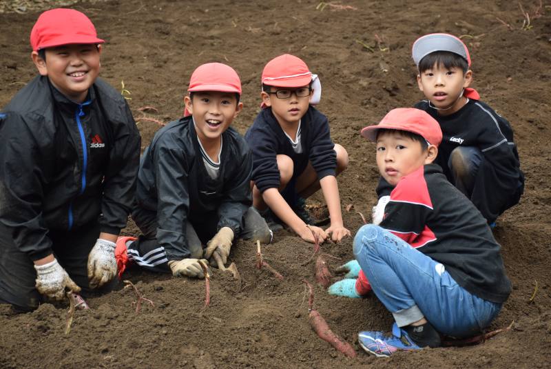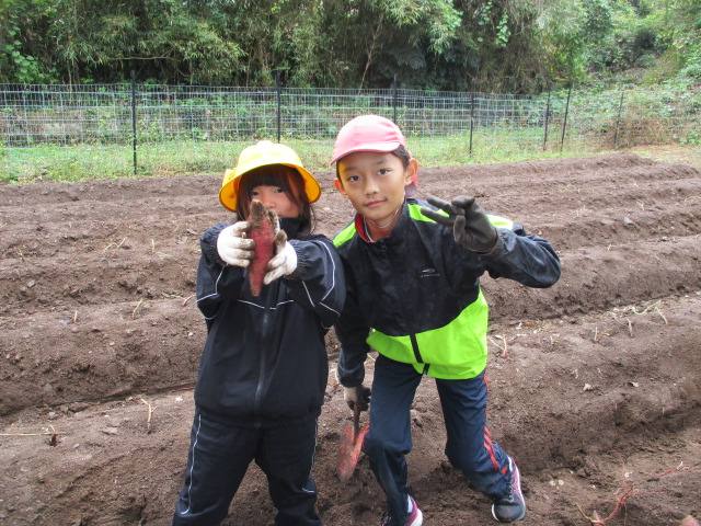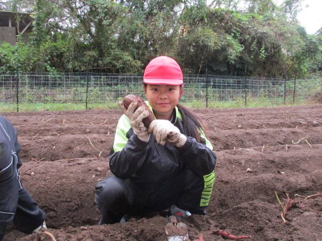 本日、全校児童で芋掘りを行いました。今回も地域の方々に来ていただき、芋の収穫の仕方を丁寧に教えていただきました。芋をとった子どもたちは「大きい芋がとれたよ!」「美味しそう」と楽しそうに話していました。とれた芋はお家で美味しく食べてください!