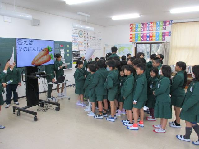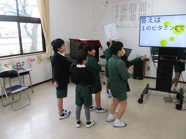 委員会の仕事内容や気を付けていることを発表してくれました。その後、様々な食材や栄養についてクイズ形式でわかりやすく伝えてくれました。給食について、みんなで楽しく学ぶことができました!