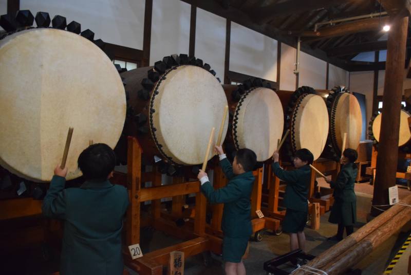 3・4年生が校外学習で大太鼓収蔵館を訪れました。