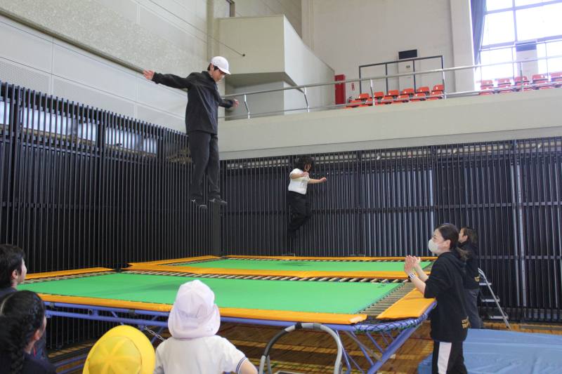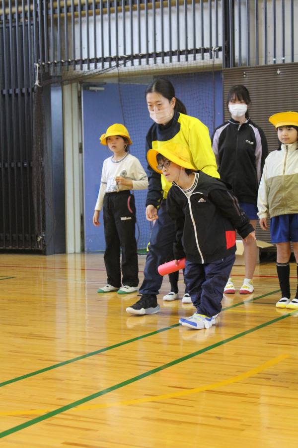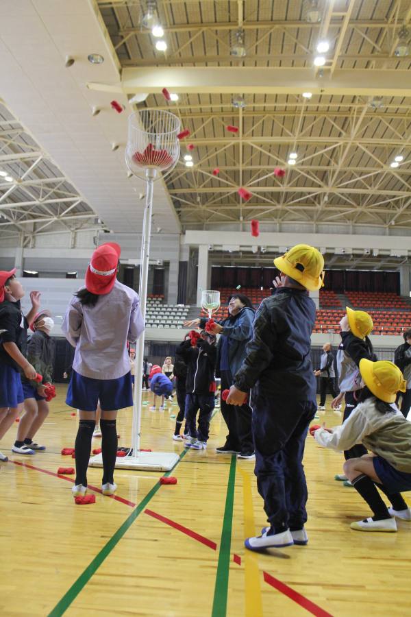 その後、スポーツ推進委員の方々に来ていただき、ニュースポーツを行いました。玉入れ、トランポリン、モルックなど様々なスポーツをみんなで楽しむことができ、大盛り上がりでした。