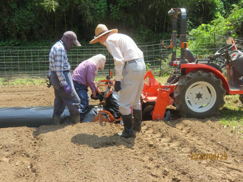 5/14(水)に、学校運営協議会委員の松本さん、吉武さん、今村さん、中島さんの4名の方々が、芋の苗植えのために、学校の畑の【うねづくり】と【マルチ張り】をしてくださいました。20mほどの長さのうねを8本も作るというのは、想像以上に大変な作業ですが、抜群のチームワークで、2時間ほどで作業を終えられました。松本さん、吉武さん、今村さん、中島さん ありがとうございました!