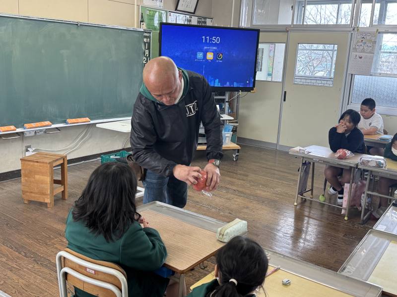 1/21(水)に、3,4年生を対象に食育講話を実施しました。この取組は、学校給食に使われている地元産の野菜について、生産者の方と交流しながら、食の大切さや地域とのつながりを感じ、感謝の気持ちを育てることを目的としています。