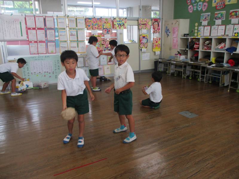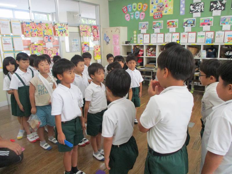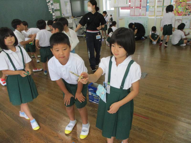 自分たちで手作りのおもちゃを作り、1年生を招待してくれました。2年生は、この日のために、遊び方を考え、道具を準備し、1年生への説明の仕方を練習し、遊んだ後に1年生に送るプレゼントまで準備しました。2年生が1年生に優しくおもちゃの使い方を説明しながら遊ぶ姿が立派なお兄さんに見えました。