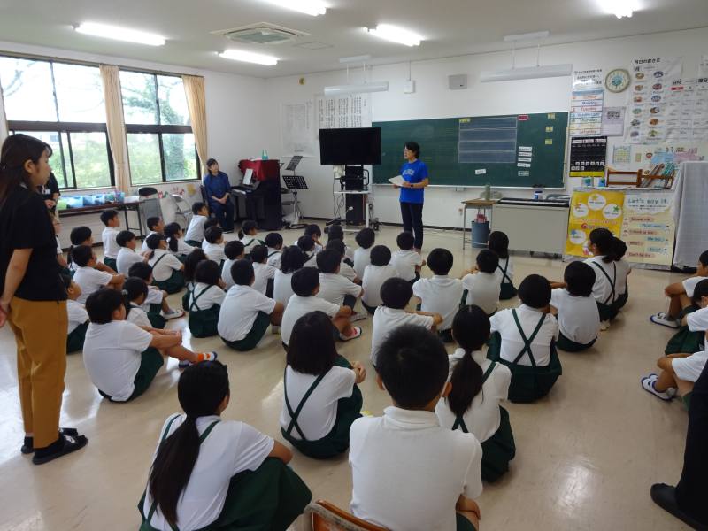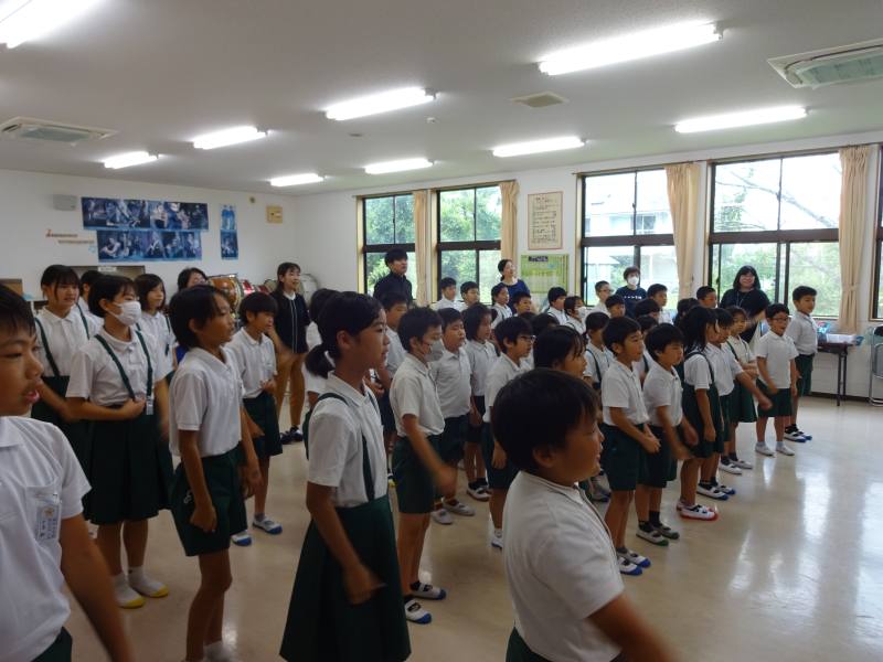 朝活動の時間に、全児童で音楽集会を行いました。