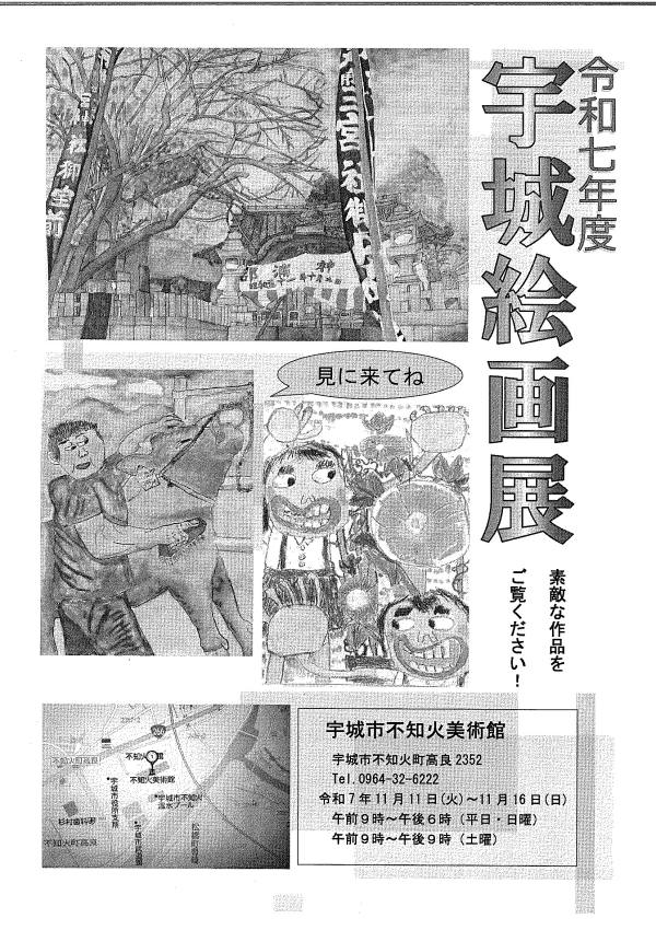 宇城絵画展が開催されています。子どもたちが頑張って描いた作品が展示されています。本校児童の作品も7点展示されていますので、是非、行ってみてください!