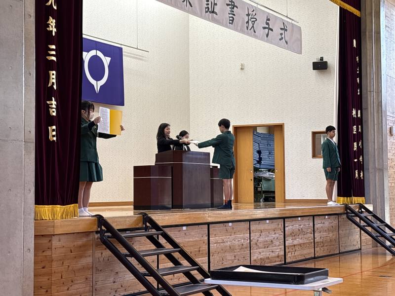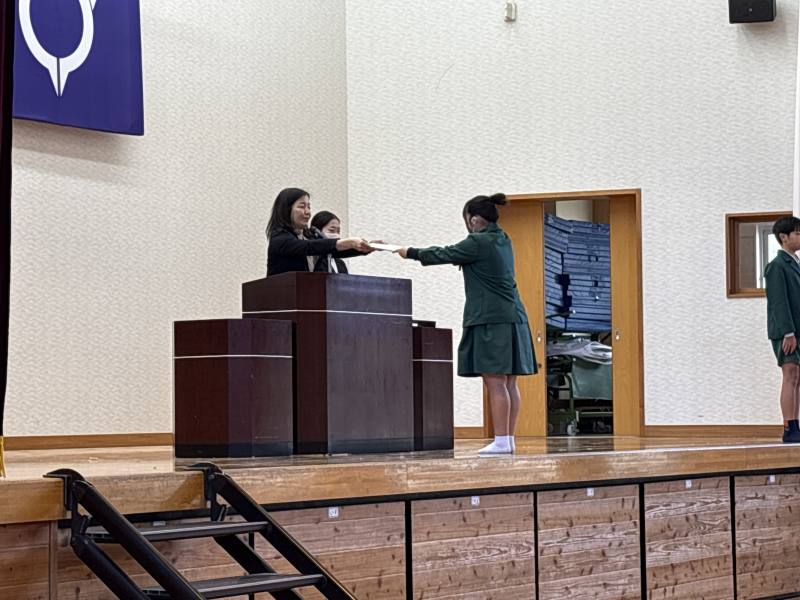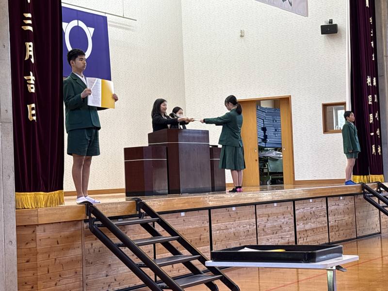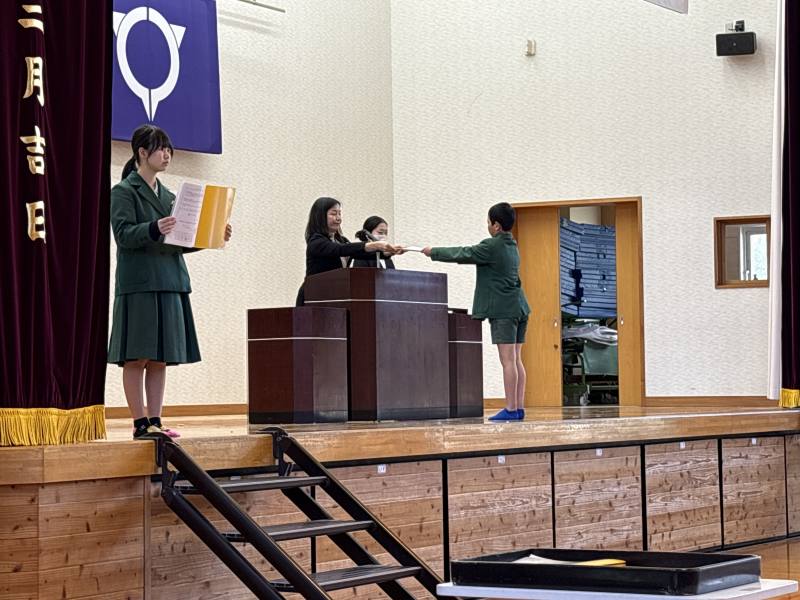 全校児童の前で堂々と修了証を受け取る姿は立派でした。その姿を見た、1~5年生はいろいろなことを感じたのではないかと思います。