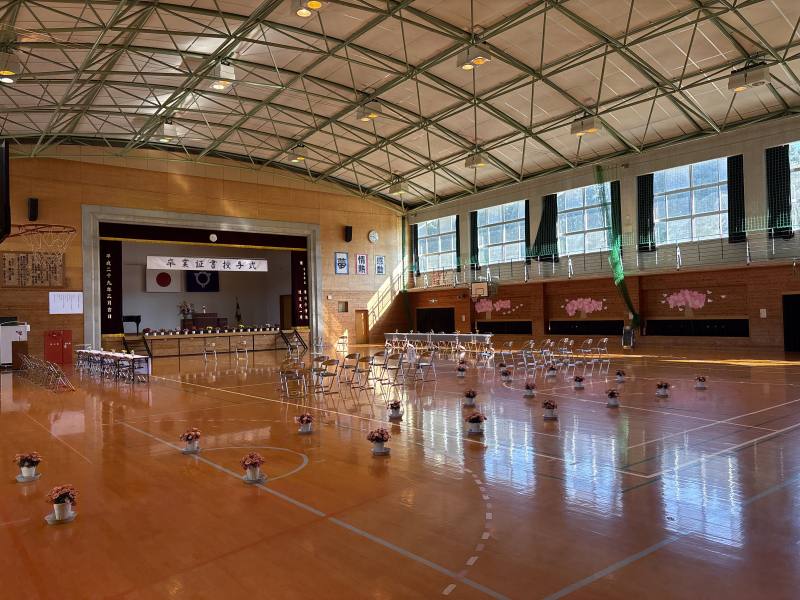 3~5年生が式場の飾りつけや掃除などの役割に分かれて、準備を行いました。