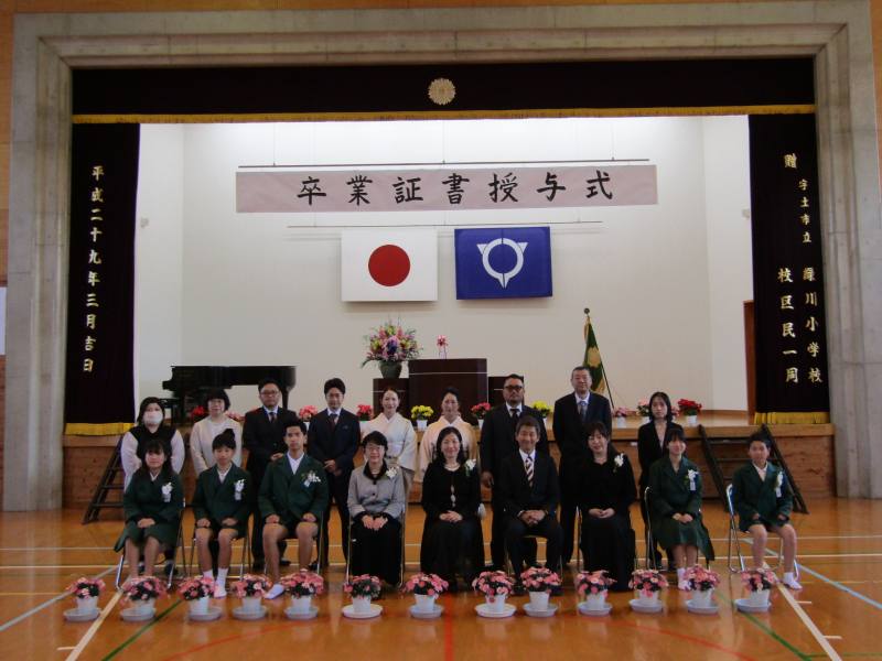 今年度は5名が保護者の皆様、地域の方々、在校生、先生たちに見守られながら緑川小学校を卒業していきました。