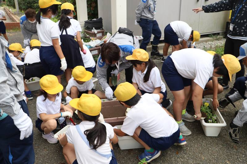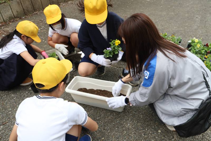 網田小学校では、九州電力送配電㈱ 宇城送配電事業所様の及び㈱九電送配サービス様職員の皆様と児童が一緒に花の苗の植え込み作業を行い、学校が色とりどりの花で明るく彩られました。子どもたちは、花を大切に育てることの大切さや、地域とのつながりを実感する貴重な機会となりました。