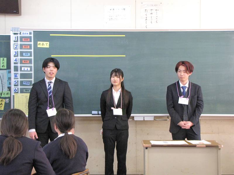 今回は特別ゲストとして東海大学の学生3名が来校し、商品開発サークルの活動を紹介しました。