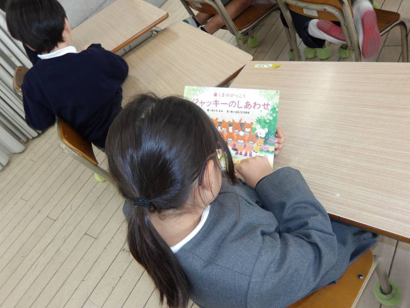 先生に絵本を読んでもらっているクラスや自分で読んでいるクラスもあります。