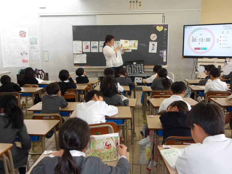 今回は図書室に来なくても解ける、放送クイズが出題されました。図書委員会の子どもたちが考えた、みんなが参加しやすくなる工夫です。