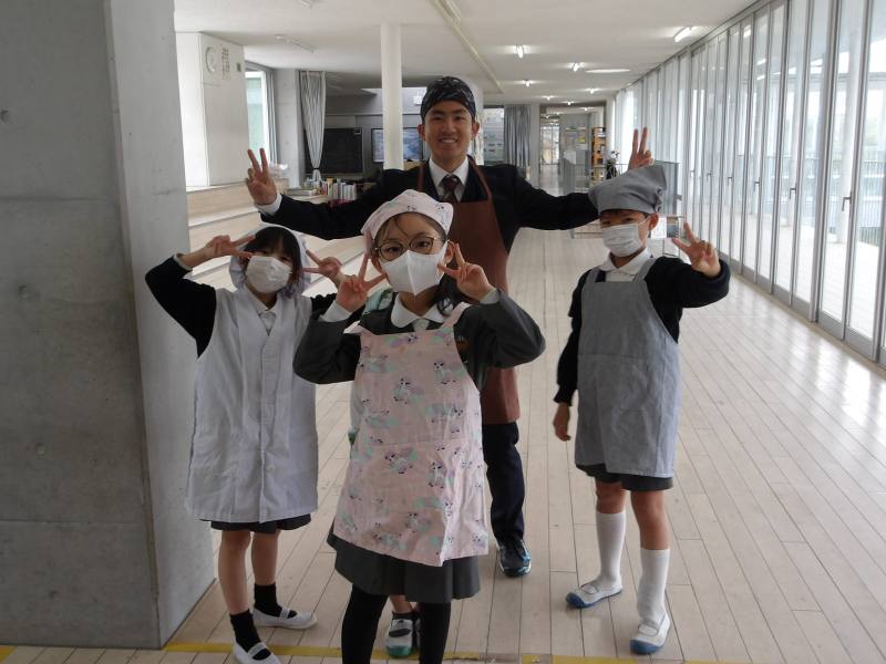 教育実習生が来ています。クラスの子どもたちと一緒に給食列車で出発する前の様子です。今日の給食はなにかな。