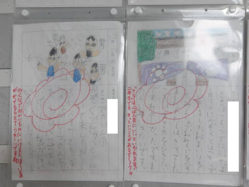 クリスマスのこと、初詣に行ったこと、親せきに会ったこと、今はやりのシール帳を買ったことなど、絵とともに楽しかったことがびっしりと書いてありました。