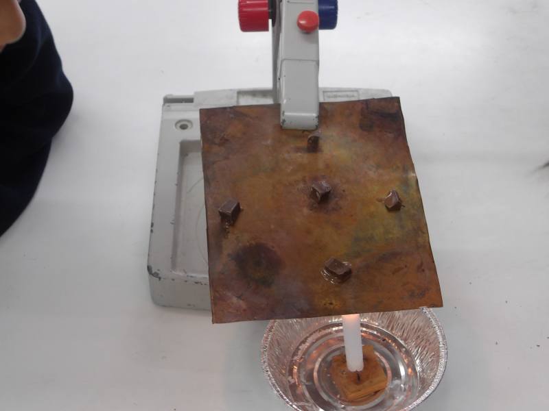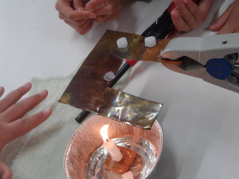 今日は自分たちでろうそくに火をつけて、フライパンなど金属を熱してみます。