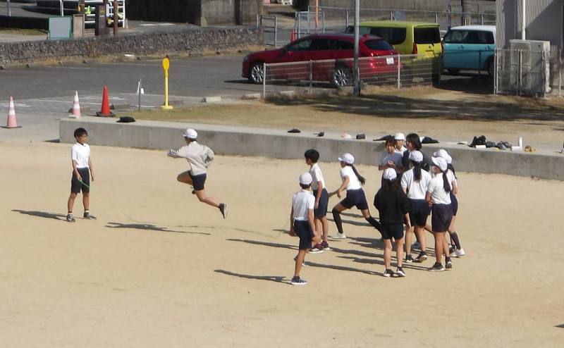 長縄班は序盤は八の字跳びのタイミングがつかめず引っかかっていましたが、徐々につなぐことができるようになっていました。大きな声で数を数えています。今日の最高は28回です。
