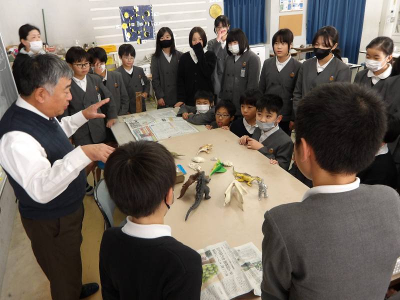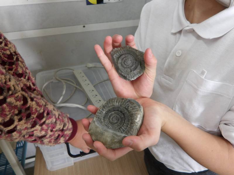 化石を見て、触って、子どもたちからの質問にたくさん答えていただきました。