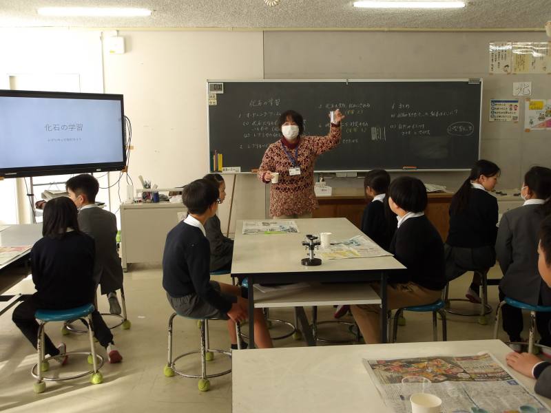 先生「化石はいろんなことを教えてくれます。さてなんでしょう?」