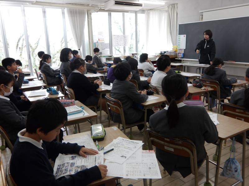 5年生です。先生が冬休みの過ごし方についての話をしています。
