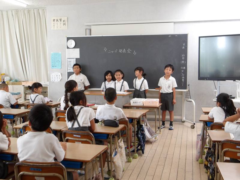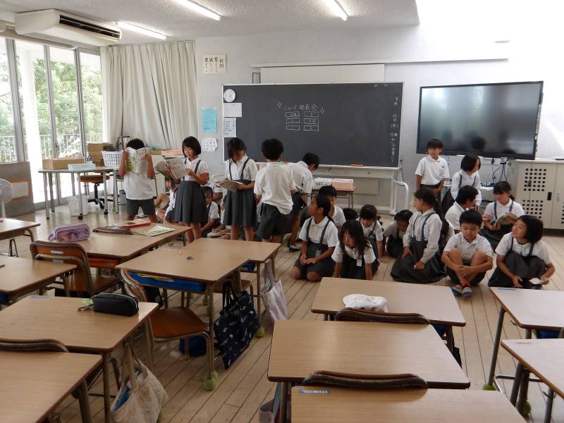 1年、先週の表現集会です。2.3.4.5年は教室でリモートで見ます。