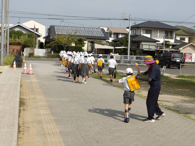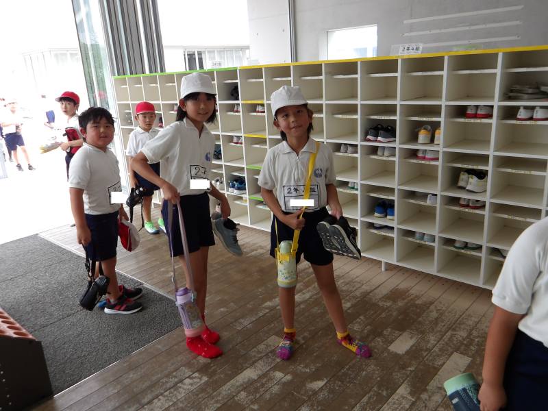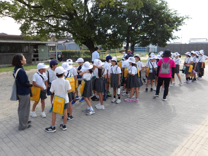4年、銀河カレッジ交流の出発前の様子です。いろんな虫がいて気を取られましたが出発できました。