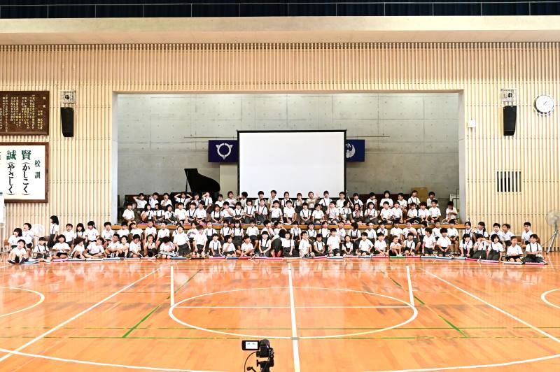体育館には、発表する1年生、1年生の保護者、6年生がいました。