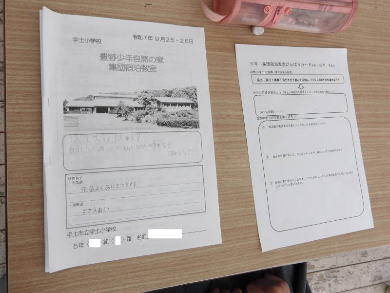 そのあと、集団宿泊教室の頑張りカードを書きます。
